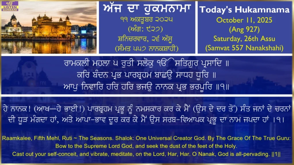 Hukamnama Sri Harmandir Sahib Ji - October 11th, 2