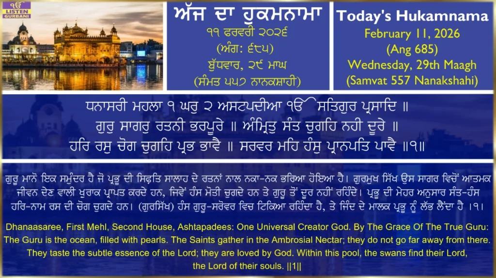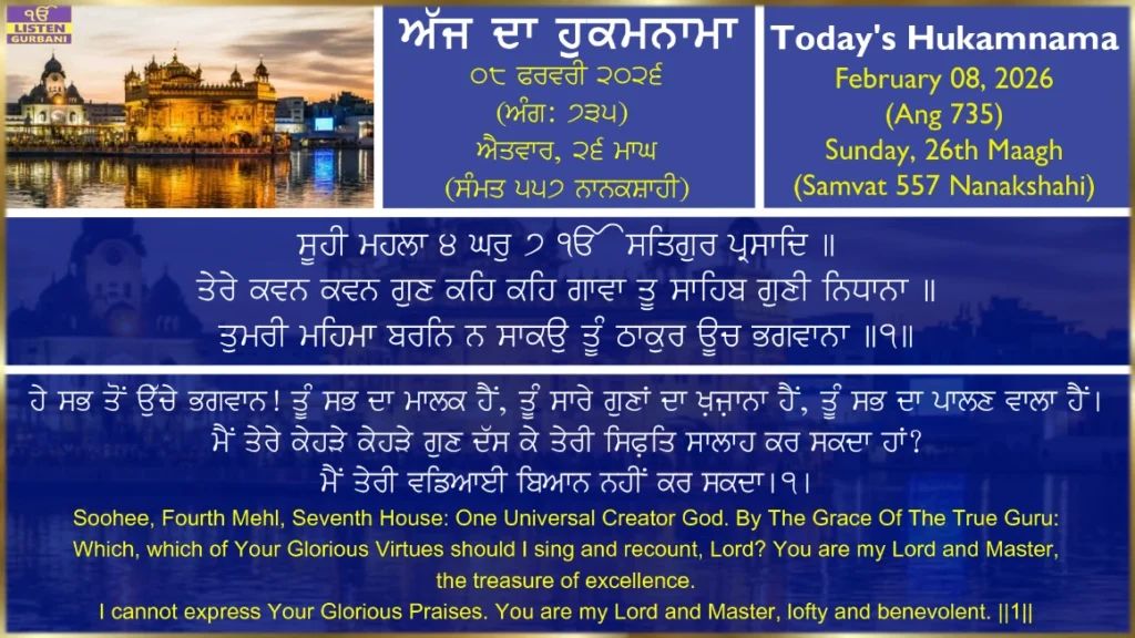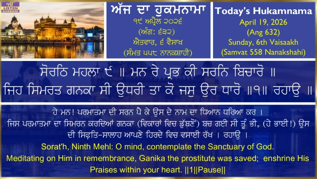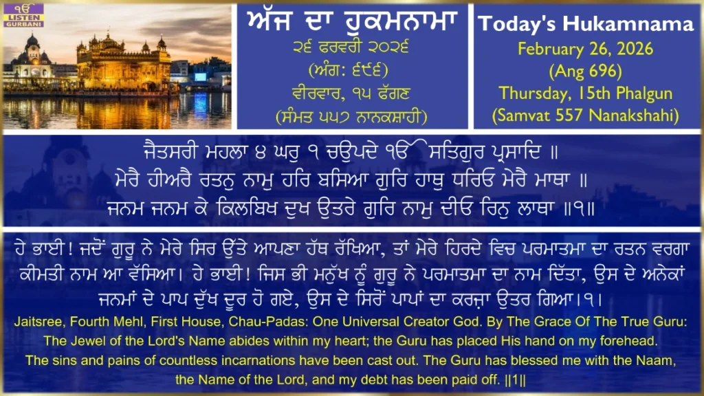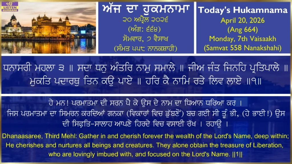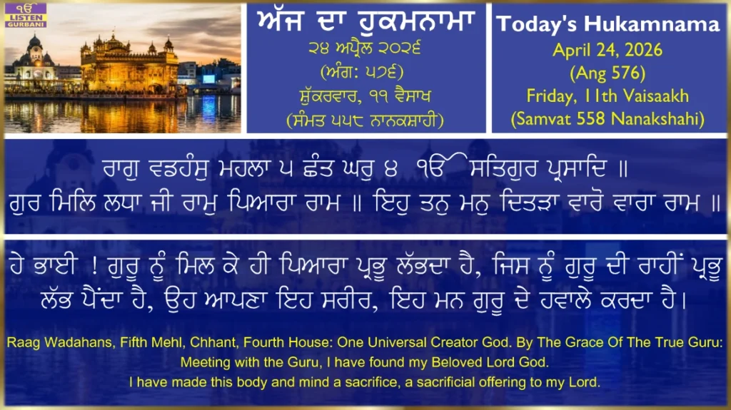 Daily Hukamnama Sahib from Sri Harmandir Sahib, Sri Amritsar.