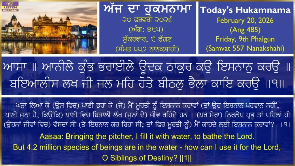 Hukamnama Sri Harmandir Sahib Ji - February 20th,