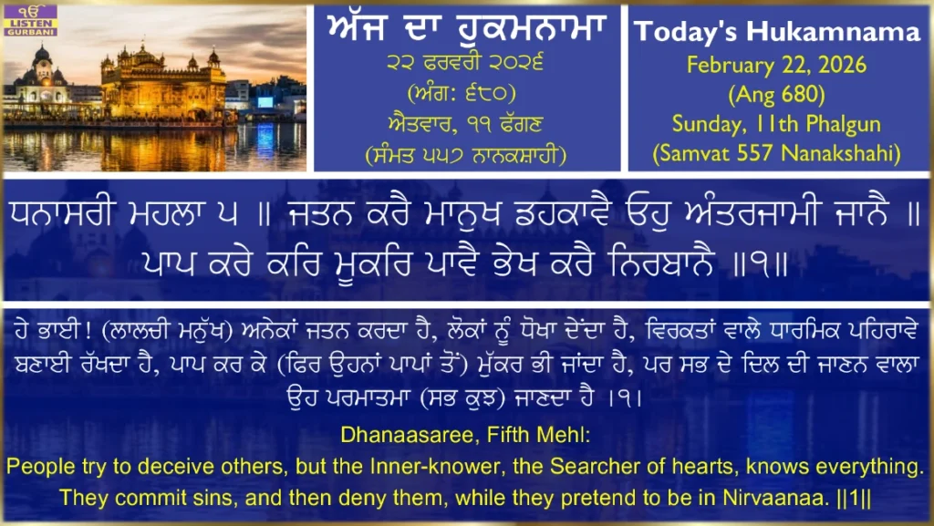 Hukamnama Sri Harmandir Sahib Ji - February 22nd,