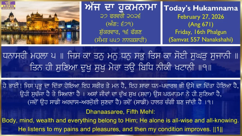 Hukamnama Sri Harmandir Sahib Ji - February 27th,