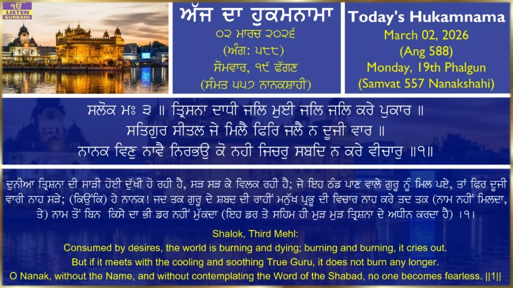 Hukamnama Sri Harmandir Sahib Ji - March 2nd, 2026