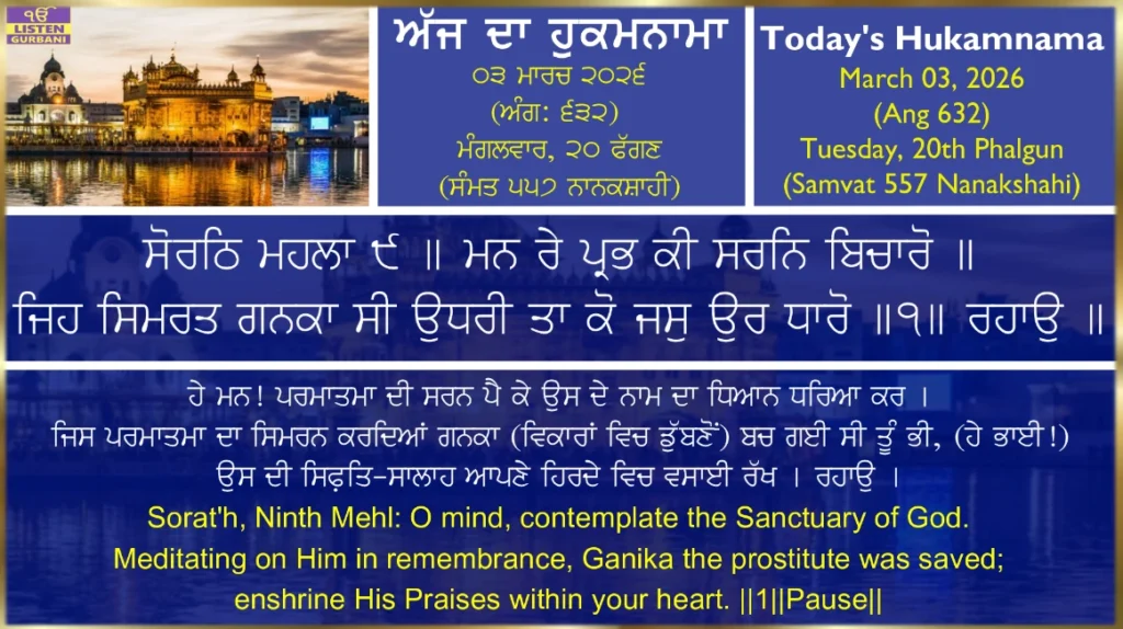 Hukamnama Sri Harmandir Sahib Ji - March 3rd, 2026