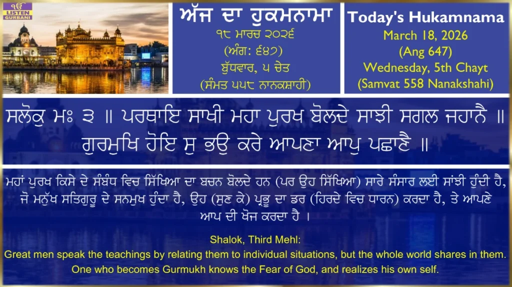Hukamnama Sri Harmandir Sahib Ji - March 18th, 202