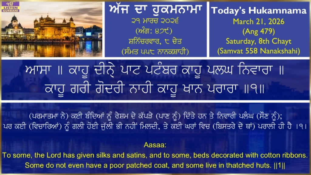 Hukamnama Sri Harmandir Sahib Ji - March 21st, 202