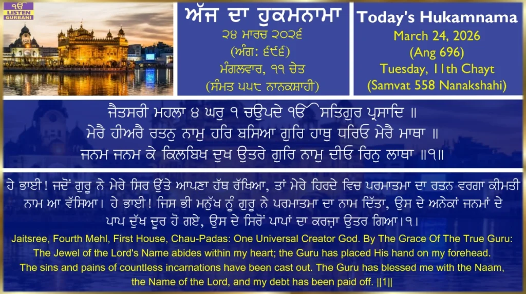 Hukamnama Sri Harmandir Sahib Ji - March 24th, 202