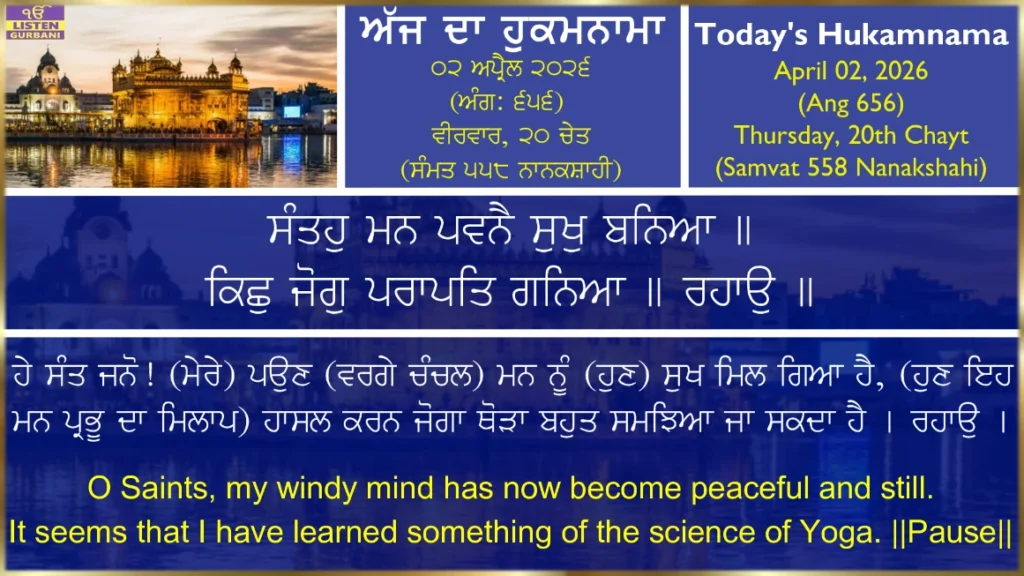 Hukamnama Sri Harmandir Sahib Ji - April 2nd, 2026