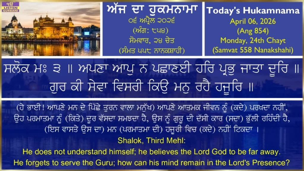 Hukamnama Sri Harmandir Sahib Ji - April 6th, 2026