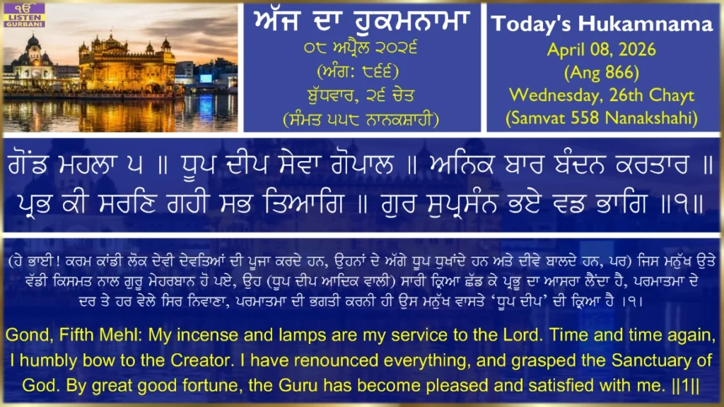 Hukamnama Sri Harmandir Sahib Ji - April 8th, 2026
