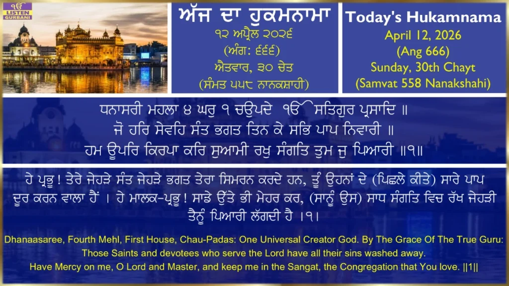 Hukamnama Sri Harmandir Sahib Ji - April 12th, 202