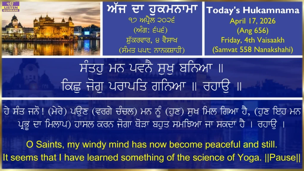 Hukamnama Sri Harmandir Sahib Ji - April 16th, 202