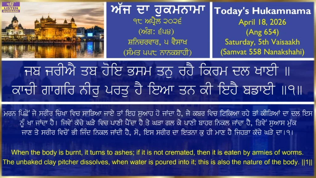 Hukamnama Sri Harmandir Sahib Ji - April 18th, 202
