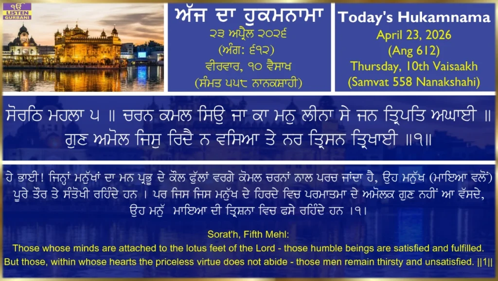 Hukamnama Sri Harmandir Sahib Ji - April 23rd, 202